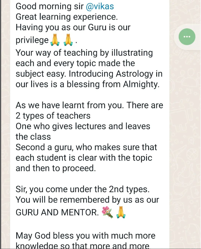 Vikas is dedicated to creating a welcoming and supportive learning environment. Whether you're a complete beginner or a seasoned astrology enthusiast, Vikas is here to guide you on your astrological journey.